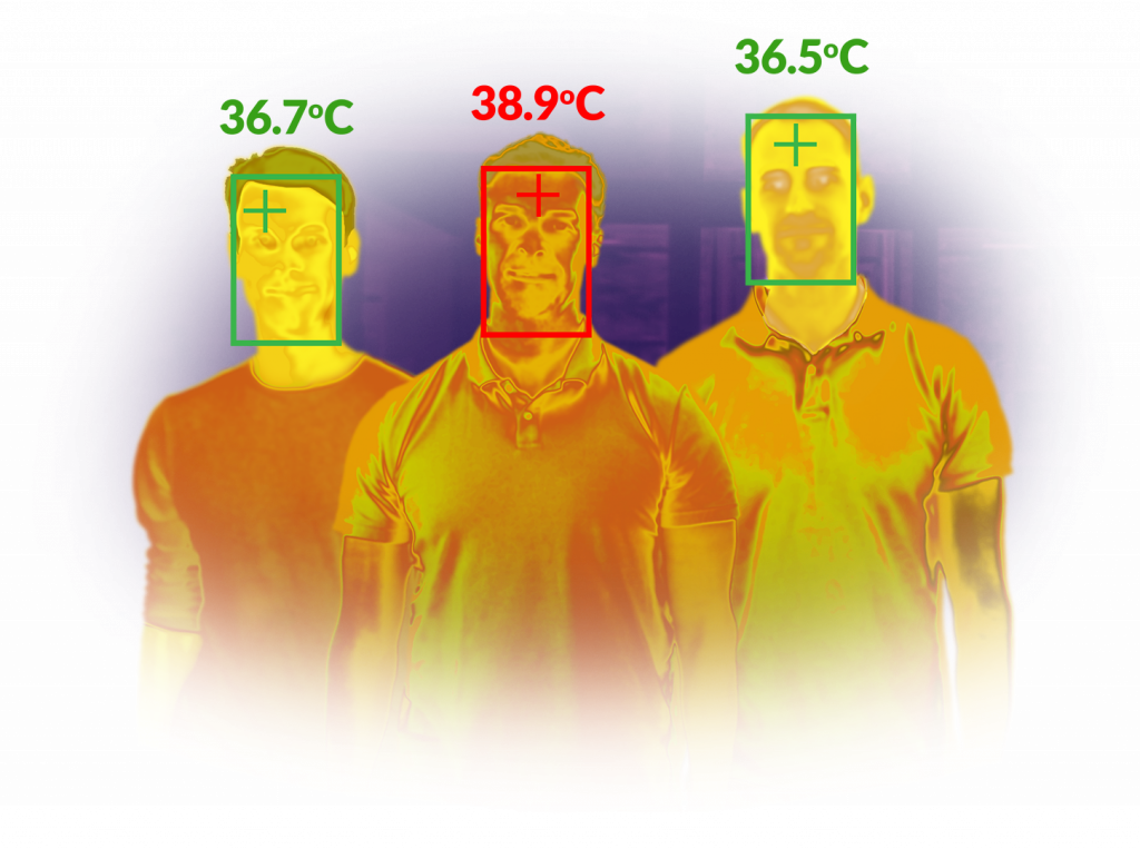 Novus TS (Temperature Scan) verwendet einen Gesichtserkennungsalgorithmus im Bild, um die Temperatur nur innerhalb des Gesichts zu messen, wobei andere Objekte im Hintergrund ignoriert werden, die in konkurrierenden Systemen ohne diese Funktionalität Fehlalarme auslösen können. Die Fähigkeit, 16 Gesichter gleichzeitig in weniger als 1 Sekunde zu messen, macht das System zu einem der wenigen, das verwendet werden kann, um die Temperatur von Personen ohne Verzögerung zu scannen, und flüssigen Durchgang bei der Kontroleinrichtung zu ermöglichen.