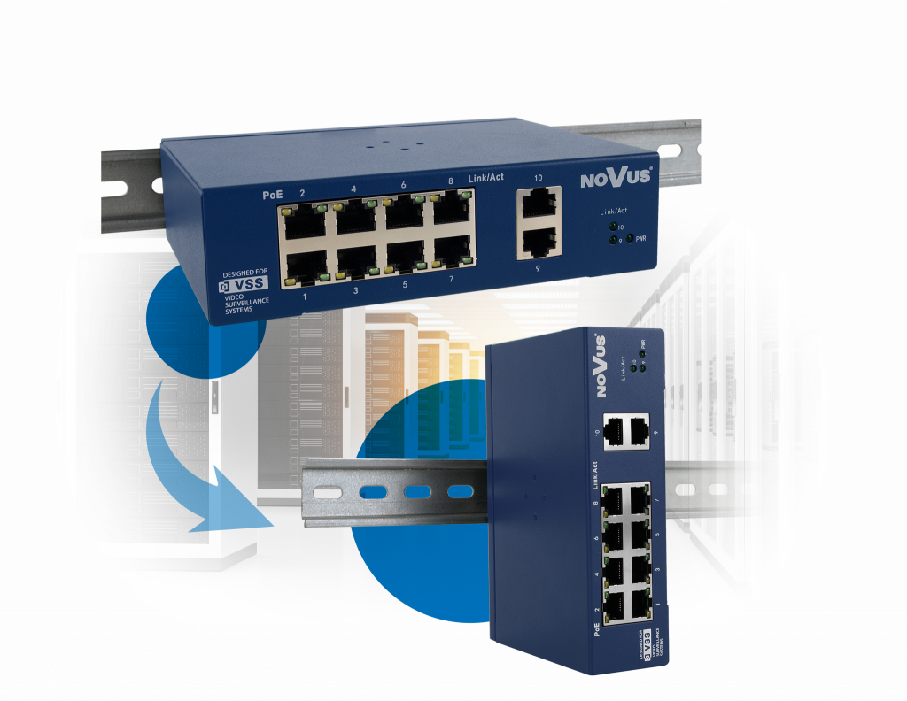 PoE+ Ports - für die Stromversorgung und Datenübertragung von IP-Kameras über ein einziges Kabel. Das vom Switch bereitgestellte Gesamtleistungsbudget ermöglicht den Anschluss von Geräten mit einer maximalen Leistungsaufnahme von 30 W bis 38 W (Unterstützung der Protokolle 802.3at / af)